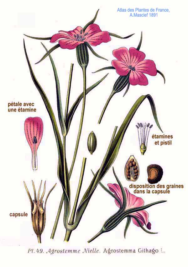 Description semence Le fruit est une capsule de forme ovoïde, de 1,2 à 1,8 cm de long. Les graines grises à noires mesurent de 2,2 à 3,0 mm de largeur pour 2,9 à 3,5 mm de longueur1. Réniformes, elles sont couvertes de tubercules pointus. Descr. plante adulte C'est une plante messicole, aujourd'hui en voie de raréfaction.