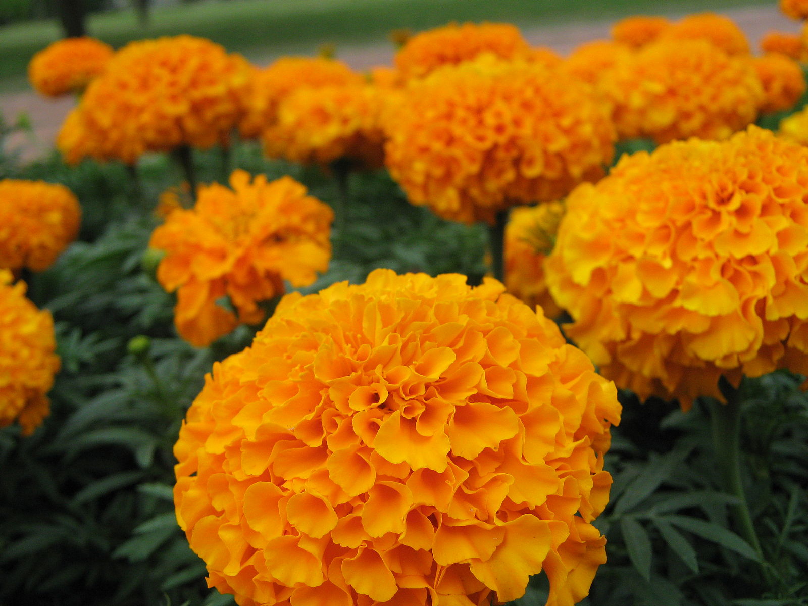 L'oeillet d'Inde mesure 15 et 30 cm. Les feuilles sont sessiles et vert foncé. Les fleurs sont jaune, orange, rouge ou brun.